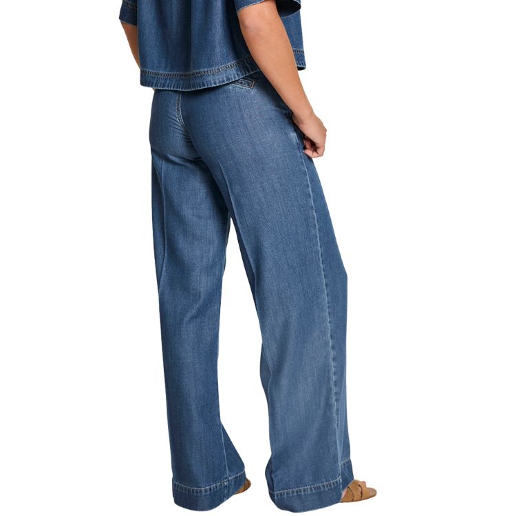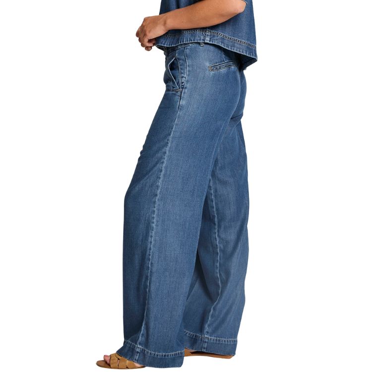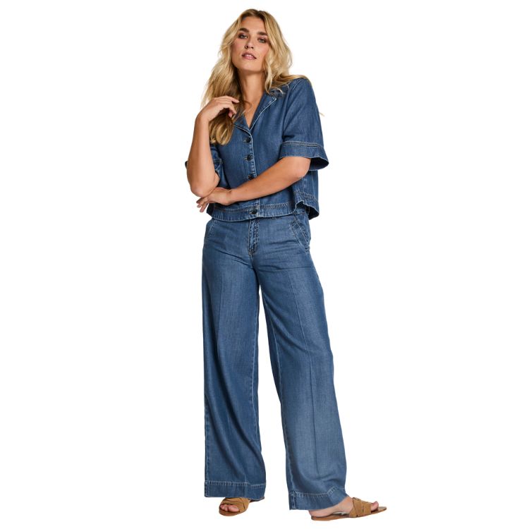 Het wijde model geeft de broek een eigentijdse, city-chique look en zorgt voor een elegante, vloeiende lijn. Stoer en vrouwelijk tegelijk — ideaal voor een stijlvolle set, maar ook moeiteloos te combineren met een knit of blouse voor een meer casual look.