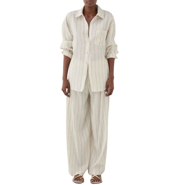 ELEH Gestreepte Palazzo Broek – Ecru – Luxe Blend