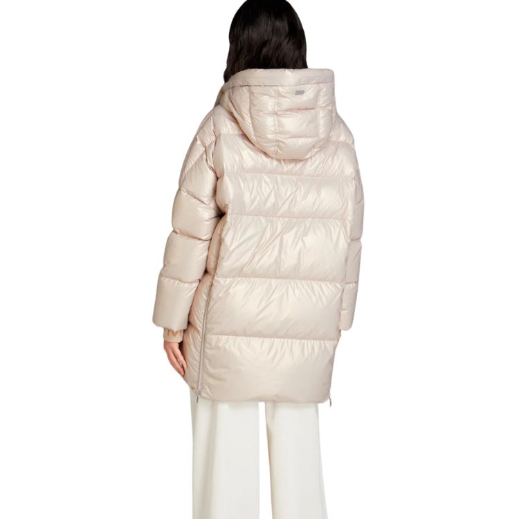 Elegant oversized jasje van gewatteerd microdons, met parelstof voor een verfijnde en eigentijdse look. De ritssluiting aan de achterkant zorgt voor een pasvorm op maat, terwijl de warmte en lichtheid van het kledingstuk het de ideale keuze maken voor wie op zoek is naar zowel comfort als stijl.