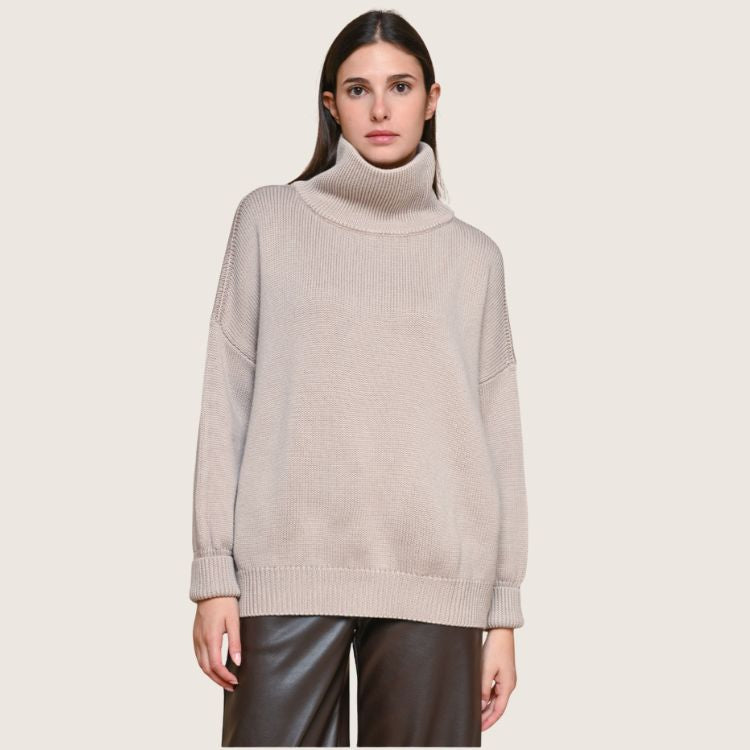 De knit voelt op de huid zo zacht als katoen, zonder te prikken of irritatie te geven. Een verfijnde kwaliteit die je onmiddellijk herkent aan de soepelheid en de elegante, rustige uitstraling: pure Quiet Luxury.